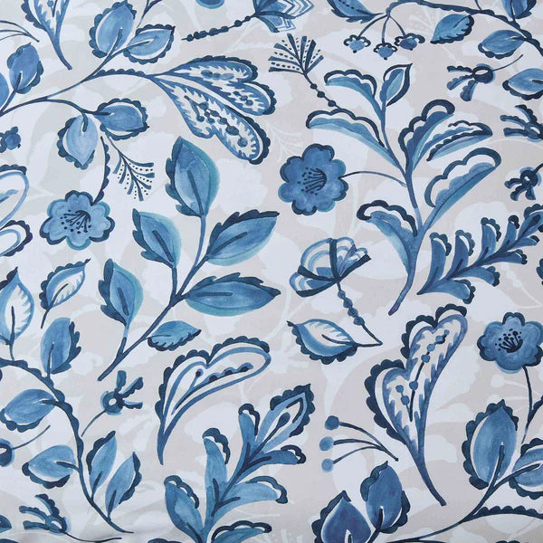 The Canopy duvet cover set makes a striking statement with its bold, hand-drawn leaf design. Shades of mid blue, navy, and teal flow across a soft white and putty-toned background, creating a fresh, layered look inspired by nature. The dynamic contrast between the cool-toned leaves and the neutral base gives it a crisp, modern feel. Canopy brings an energizing yet grounded touch to any bedroom.