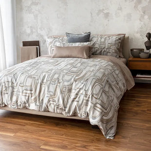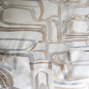 Inspired by grand canyons, narrow bodies of water and U-shaped valleys, Fjord combines the traditional Italian craftsmanship of jacquard weaving with iconic mid-century style. Gaze at the shimmering earthly tones of blue slate and taupe, as the intersecting shapes portray layers of rivers, rocks and valleys. Let the vista of colour and everlasting movement dress your space.