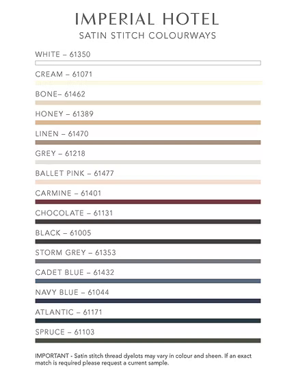 - Piped with white satin cording