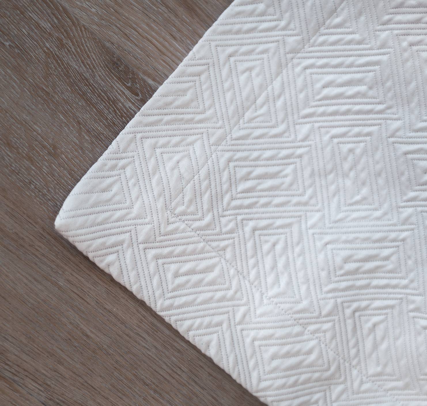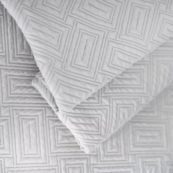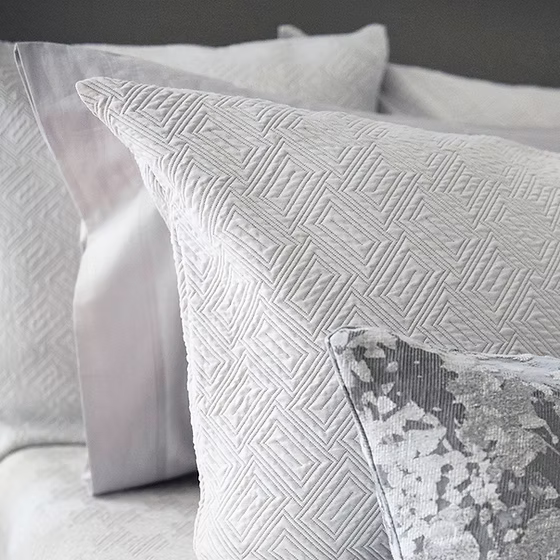 A versatile elegant coverlet that perfectly complements any bedroom. Scala sparkles with geometric precision creating an understated dazzling visual effect, true to its name. This luxuriously soft sateen matelassé has a contemporary and tactile simplicity that defines minimalistic elegance. Made from exceptionally soft 100% Egyptian Giza cotton, Scala will bring sophistication to the bedroom with ease.